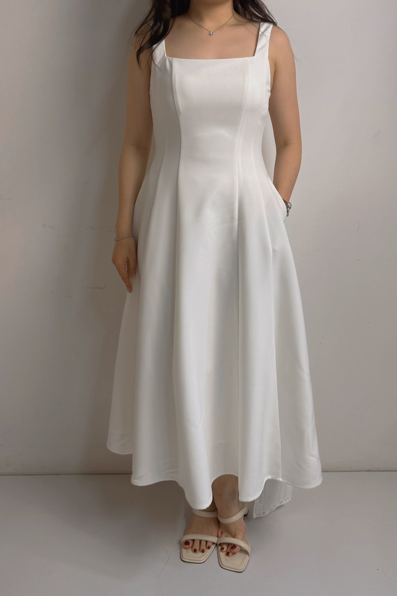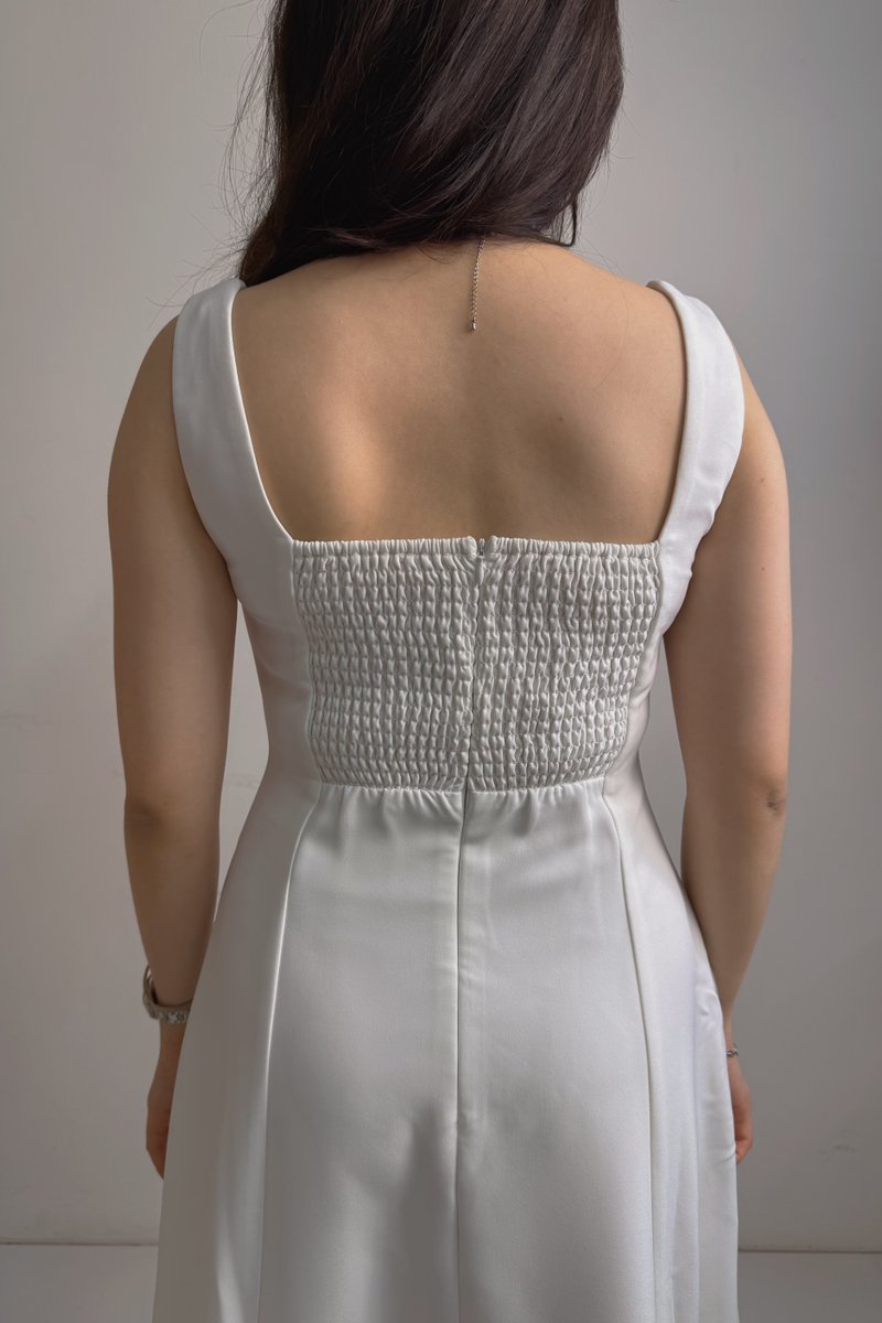 A timeless silhouette with square neckline and paneled seams. Comes lined with side pockets and smocked back for a comfortable and flattering fit.