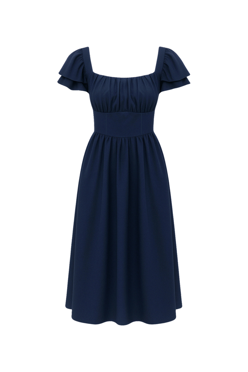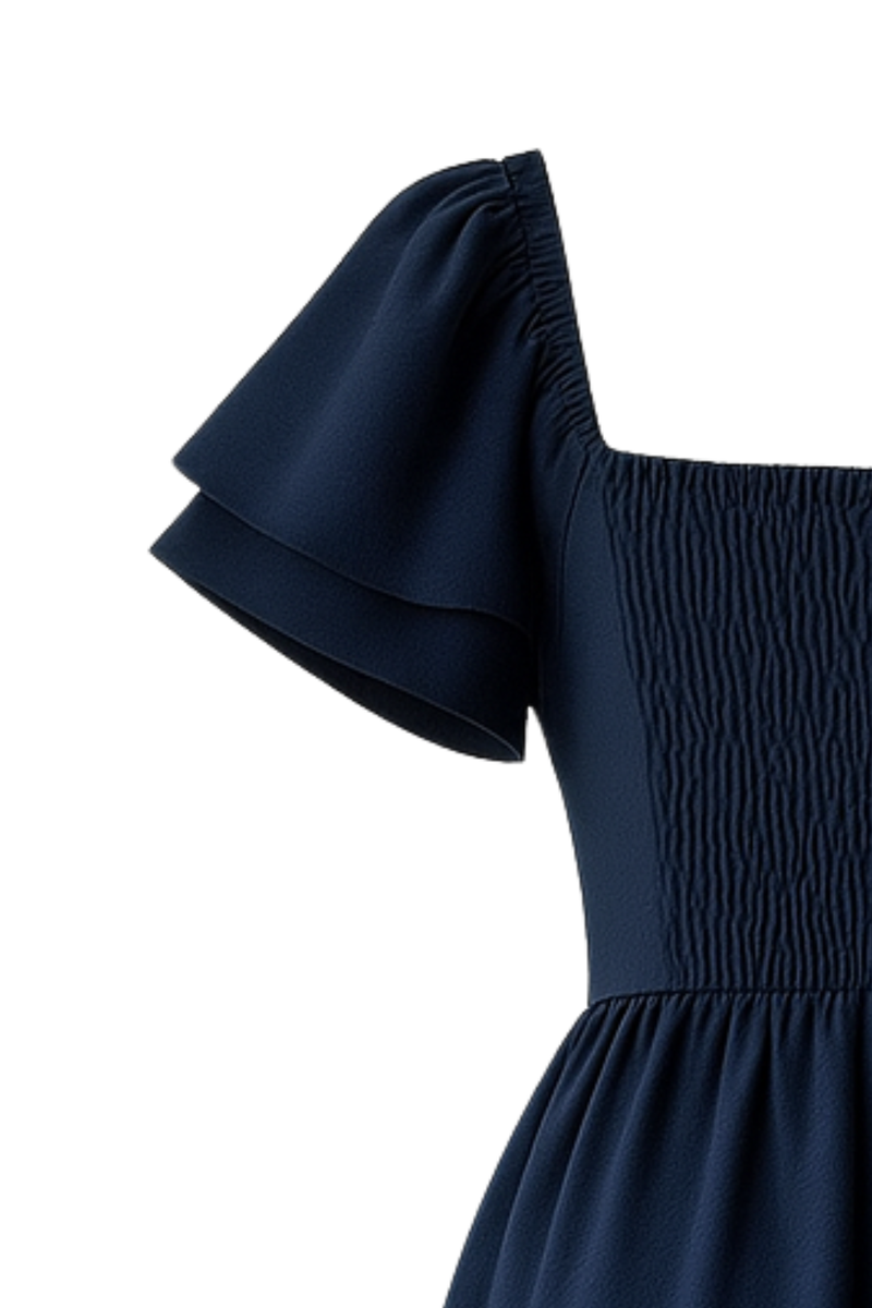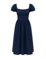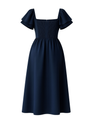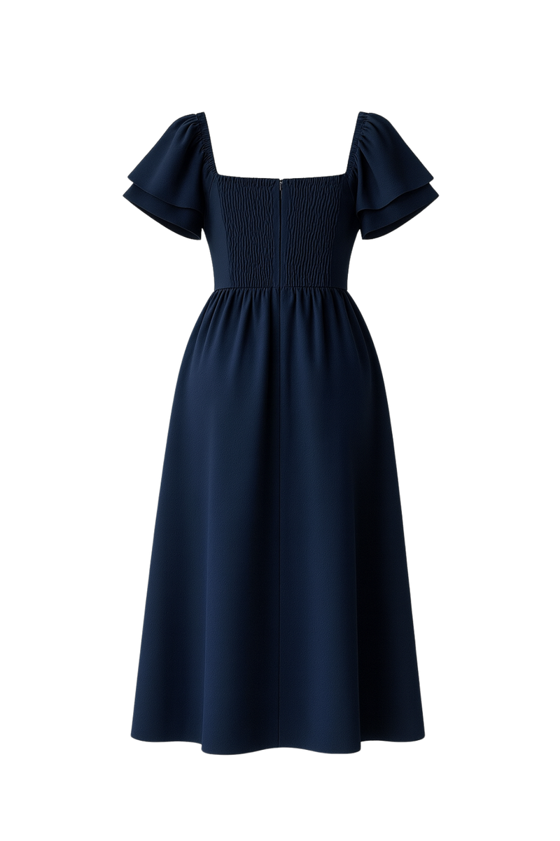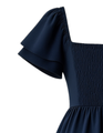 Soft flutter sleeves, removable padding and a thick waistband create a flattering silhouette in this fully lined midi dress. Finished with a smocked back and pockets, it’s thoughtfully made for comfort from morning to night.